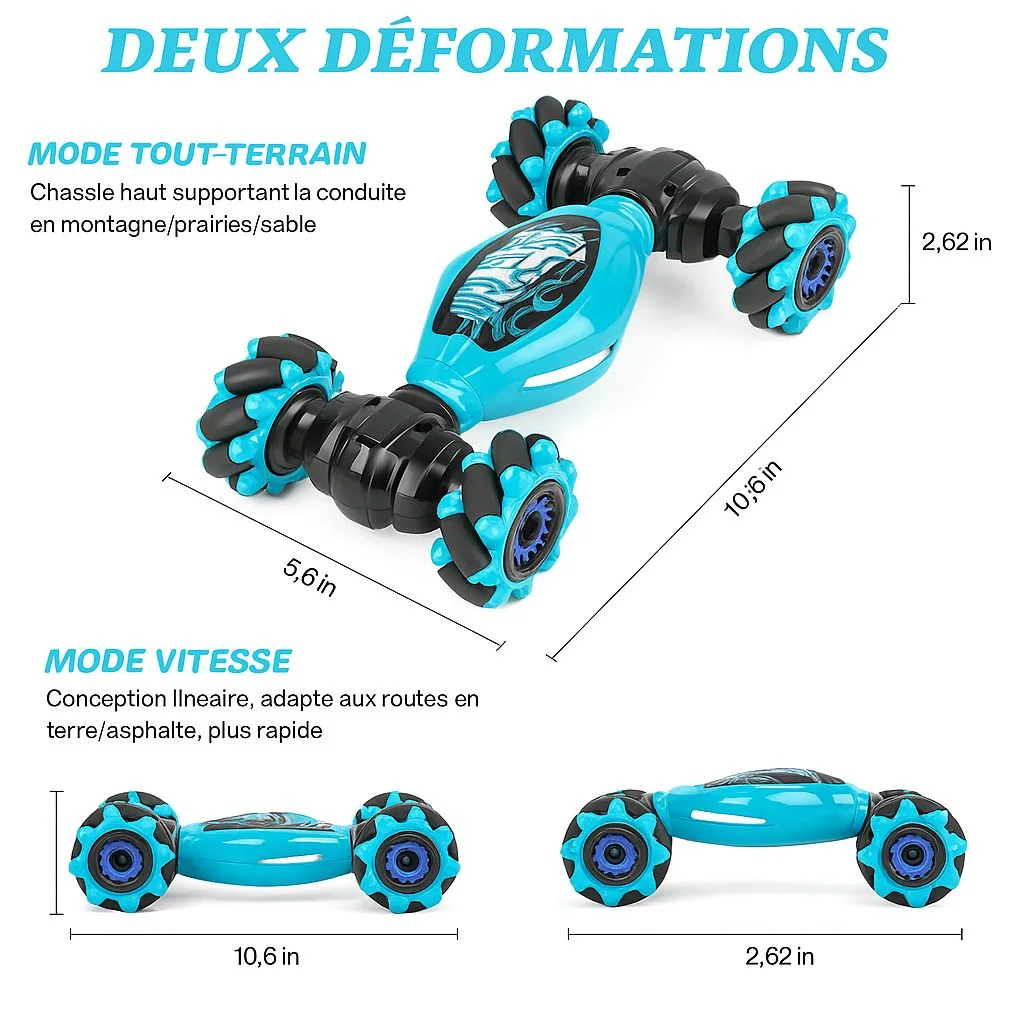 Offrez un jouet futuriste qui suit les mouvements de la main ! Notre voiture tĂ©lĂ©commandĂ©e intelligente combine technologie, soliditĂ© et sensations fortes, idĂ©ale pour Ă©merveiller les enfants pendant les fĂȘtes.